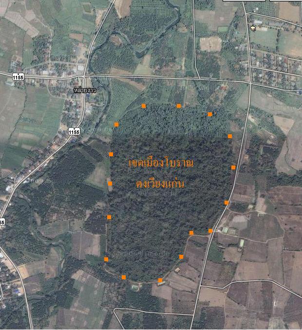 ตั้งอยู่หมู่ที่ 3 บ้านม่วง ตำบลม่วงยาย อำเภอเวียงแก่น จังหวัดเชียงราย อยู่ห่างจากตัวอำเภอไปทางทิศตะวันออกเฉียงใต้ ประมาณ 200 เมตร เป็นเมืองโบราณ ตั้งอยู่บนเนินสูงราว 30 35 เมตร เนื้อที่ประมาณ 286 ไร่ 1 งาน 86.09 ตารางวา เป็นพื้นที่ป่ารกทึบ มีพืชพันทางธรรมชาติ สมุนไพร และสัตว์ป่านานาชนิด ปัจจุบันได้ขึ้นทะเบียนเป็นโบราณสถานแล้ว เป็นพื้นที่รับผิดชอบขององค์การบริหารส่วนตำบลม่วงยาย