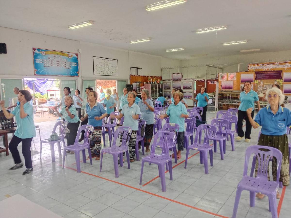 ภาคบ่าย กิจกรรมออกกำลังกายเพื่อสุขภาพและการให้นักเรียนสูงวัยได้สนุกกับเกมส์คลายเครียด