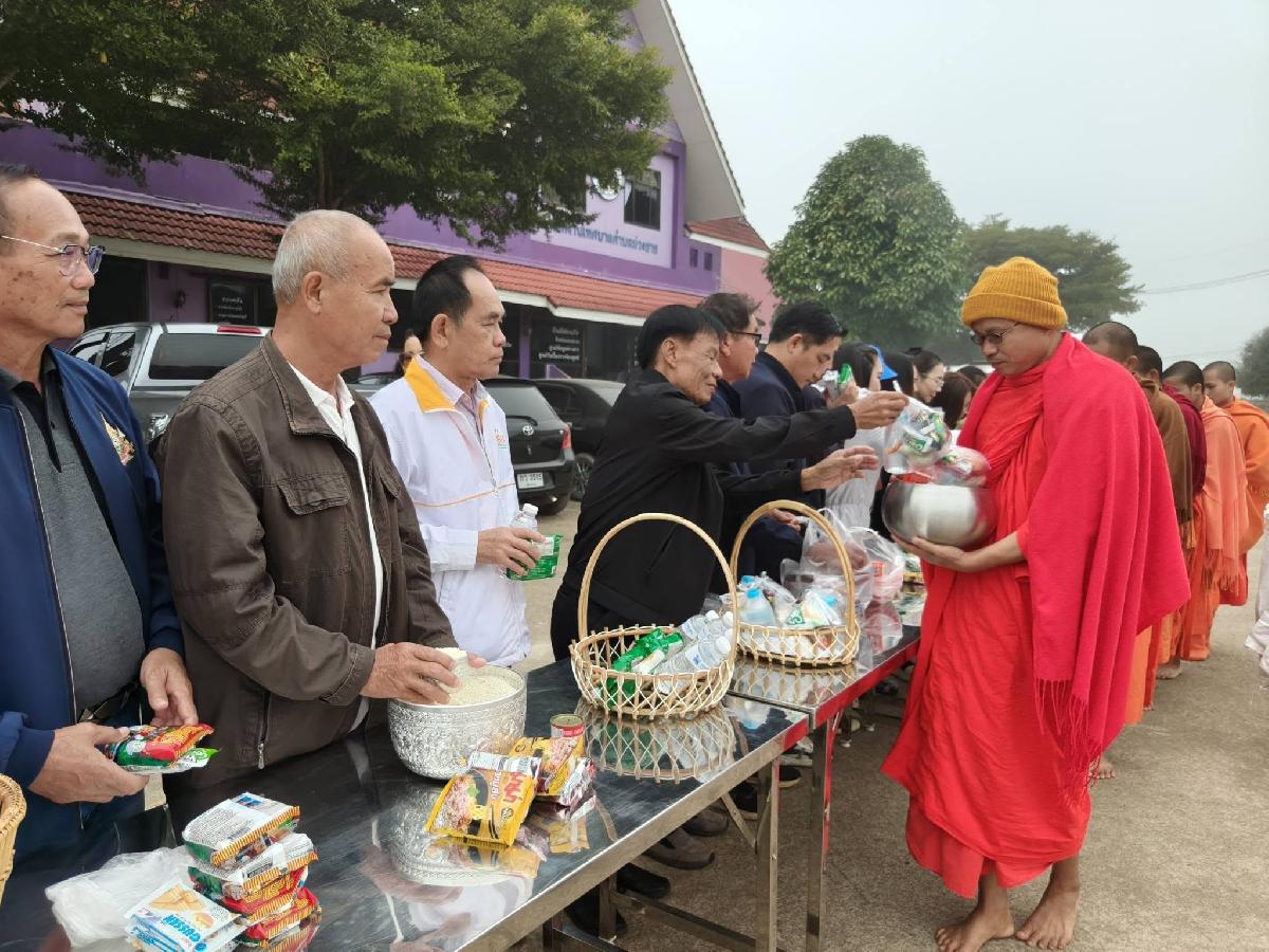 วันที่ 13 มกราคม 2569นายเกษม นันชัย นายกเทศมนตรีตำบลม่วงยาย พร้อมด้วยคณะผู้บริหาร สมาชิกสภา และพนักงานเทศบาลตำบลม่วงยาย ร่วมกิจกรรมทำบุญตักบาตรข้าวสาร อาหารแห้ง แด่พระสงฆ์จำนวน 5 รูป ร่วมกับโรงเรียนผู้สูงวัยใส่ใจสุขภาพตำบลม่วงยาย ณ ลานเทศบาลตำบลม่วงยาย เมื่อเวลา 09.00 น. เพื่อส่งเสริมคุณธรรม จริยธรรม สืบสานประเพณีอันดีงาม และสร้างความสัมพันธ์อันดีในชุมชน